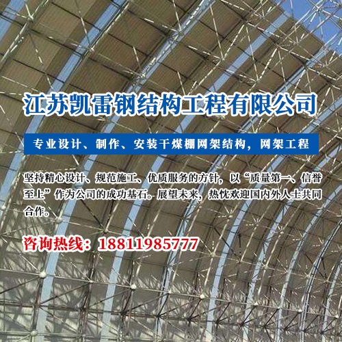 江蘇凱雷鋼結構工程有限公司是專業設計、制作、安裝干煤棚網架結構,煤場封閉料倉網架,及其配件的企業... 查看詳情